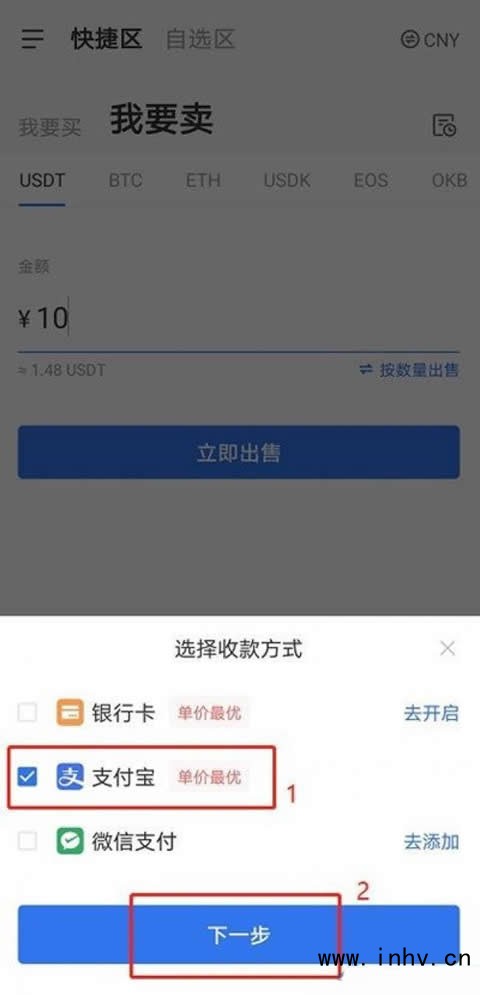 2.选择想要的收款方式,例如支付宝,点击下一步,再点击确认出售。