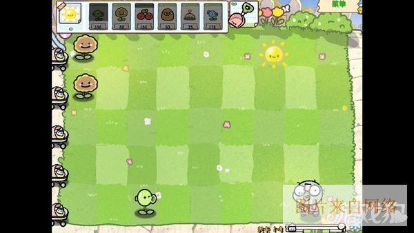 6、游戏画风采用了Q萌的幼儿园画风,植物和僵尸形象都得到了萌化,僵尸被击倒后还有掉眼泪的动画;