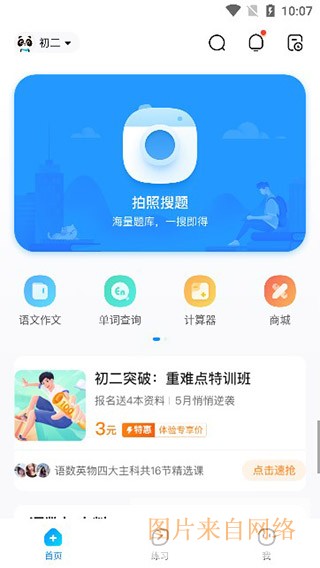 3、在首页当中,我们可以看到一个非常实用的拍照搜题功能;