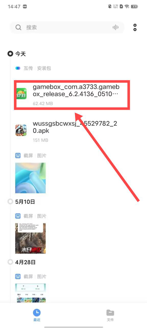 2.在文件管理的最近文件记录中,找到3733的图标,点击安装即可。