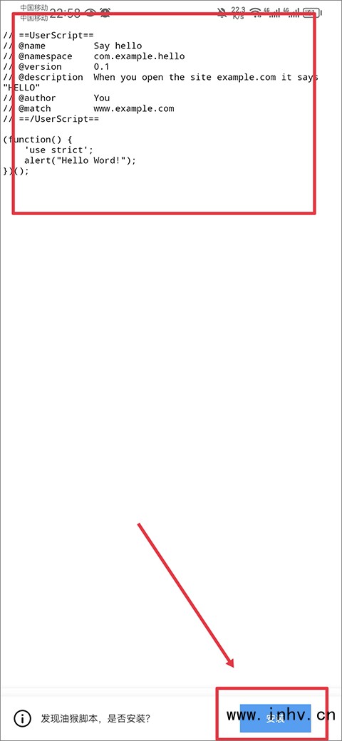 7、进入后就会显示脚本代码,你可以选择复制脚本代码添加安装,也可以直接点击下方弹出的安装即可
