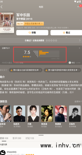 3、进入到感兴趣电影的详情页面,能够查看该电影的评分;