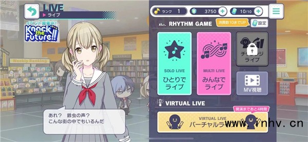 6、游戏内设有「虚拟演唱会」(Virtual Live)模式,可以让各位玩家实时在游戏里体验演唱会。虚拟演唱会过程中,可以通过点击屏幕来挥动应援棒,滑动或倾斜设备来自由移动视角,并且可以和其他玩家一起用各种各样的方式进行应援(更换应援棒颜色或者使用礼物、动作、表情)。