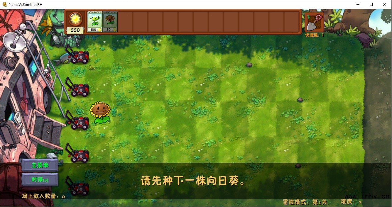 4、进入游戏,玩家需种植植物来抵御僵尸的进攻;