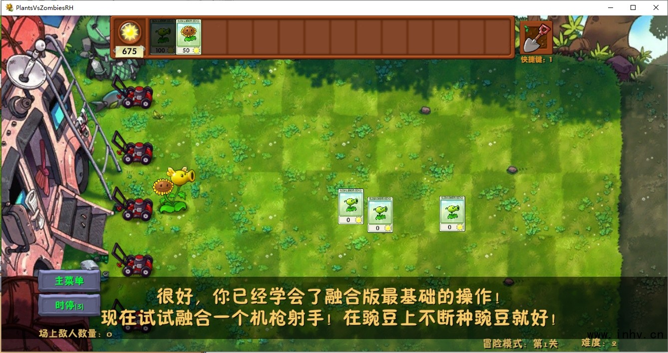 5、可以把两个植物种在一个格子上,如向日葵融合豌豆射手,得到向日葵豌豆射手;
