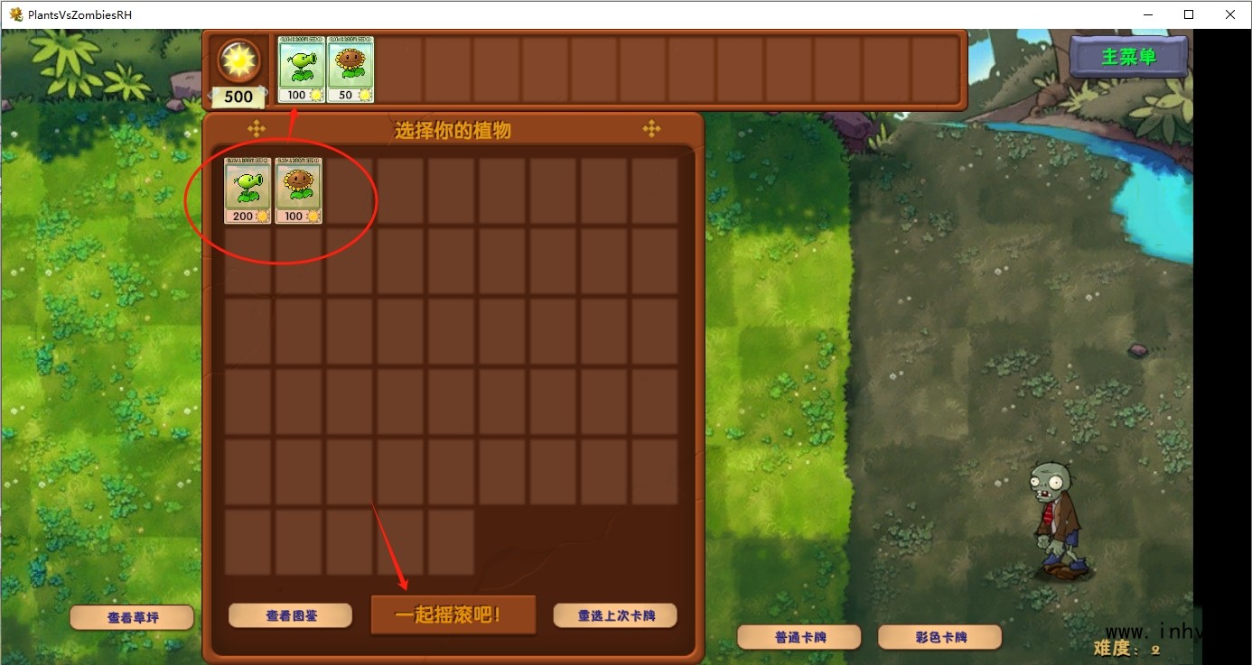 3、接着选择要上场的植物,选好后“点击一起摇滚吧!”开始游戏;