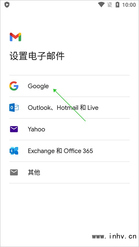 而后在打开的设置电子邮件页面中选择第一种,即Google,