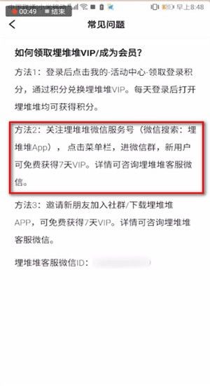 方法3:邀请新朋友加入社群/下载埋堆堆app,可免费获得7天VIP。