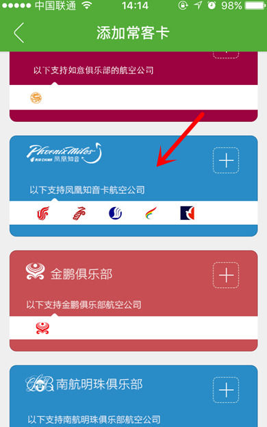 3.根据你的常客卡的相应的卡的类型,选择相应的卡片,之后进行相应的常客卡的添加工作。