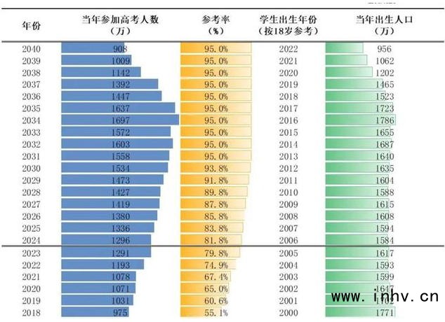 - 预测显示,2027年将是考生人数接近峰值的关键节点,随后可能开始出现小幅回落。