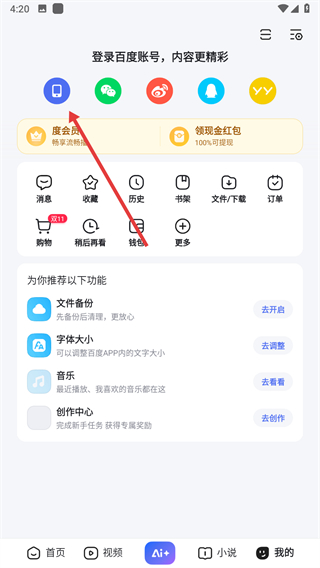 首页底部快速进入视频频道,海量明星娱乐、搞笑段子、经典剧集视频,还能拍小视频记录身边新鲜事,简单操作能拍又能看。