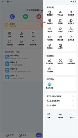 1、打开百度APP,进入到首页内点击右下角我的图标。