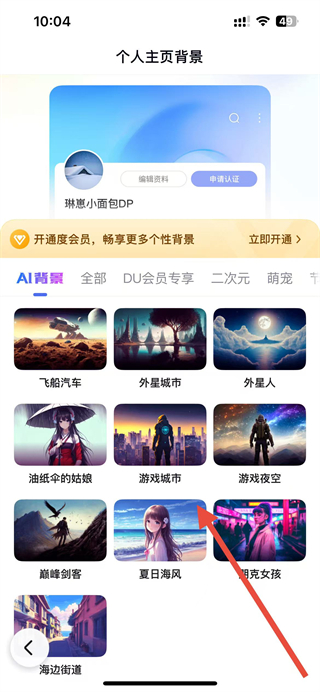 4、在个人主页背景界面,选择喜欢的背景样式点击即可完成更换。