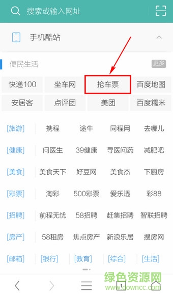 第一步:打开uc浏览器,从手机酷站里点“抢车票”,进入uc抢票专家,需要事先准备好铁道部12306网站的账户密码,然后登录。