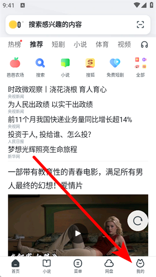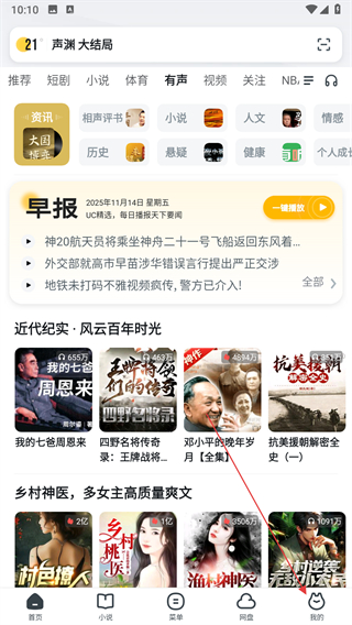 1、打开UC浏览器,点击底部我的选项进入个人中心页面。