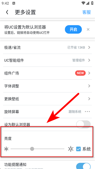 3、进入更多设置后,找到亮度对应的滑块,拖动即可调节亮度。