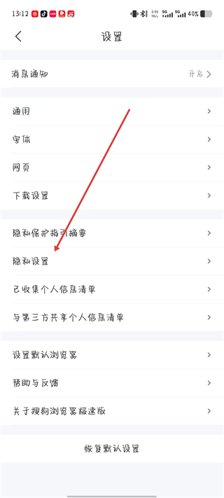 2、在设置页面,点击隐私设置选项。