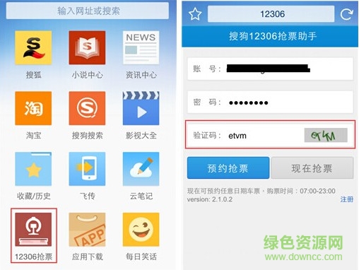 使用搜狗手机浏览器进行“一键约票”的操作十分简单,打开搜狗手机浏览器(安卓、iOS端均可),点击“12306抢票”功能,进入登录界面。值得一提的是,在登陆环节,搜狗手机浏览器会智能进行分析,自动填写12306网站的验证码,帮助大家节省了繁琐的输入过程。