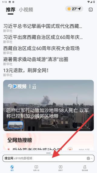 2、在推荐页面正下方有搜全网的显示,点击后可以输入相关的内容进行搜索。