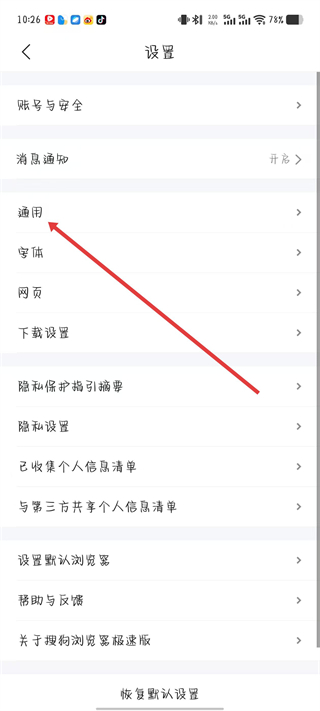 3、在设置页面,找到并点击通用选项。