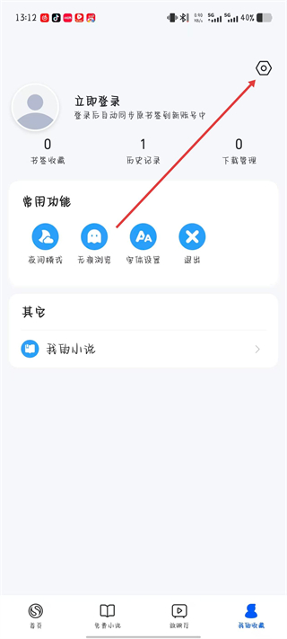 2、在个人功能页面右上角,找到设置图标并点击,进入浏览器的设置界面。