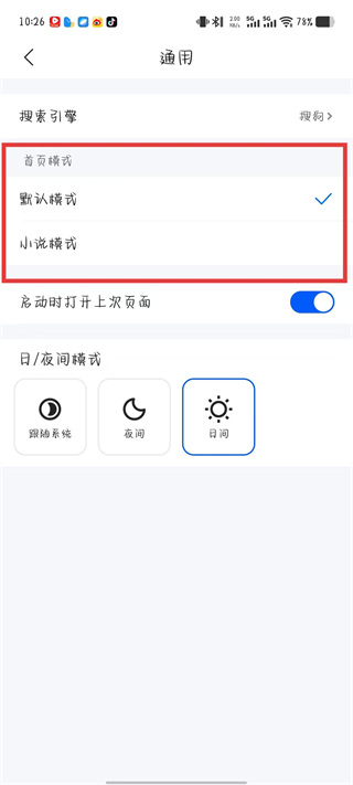 4、选择默认模式或小说模式,选择后即可。