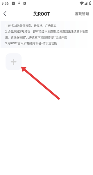 3、在免ROOT页面点击添加游戏按钮,进入已装应用页面。