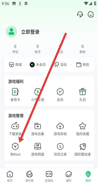 2、个人中心页面点击“免Root”,进入免ROOT页面。