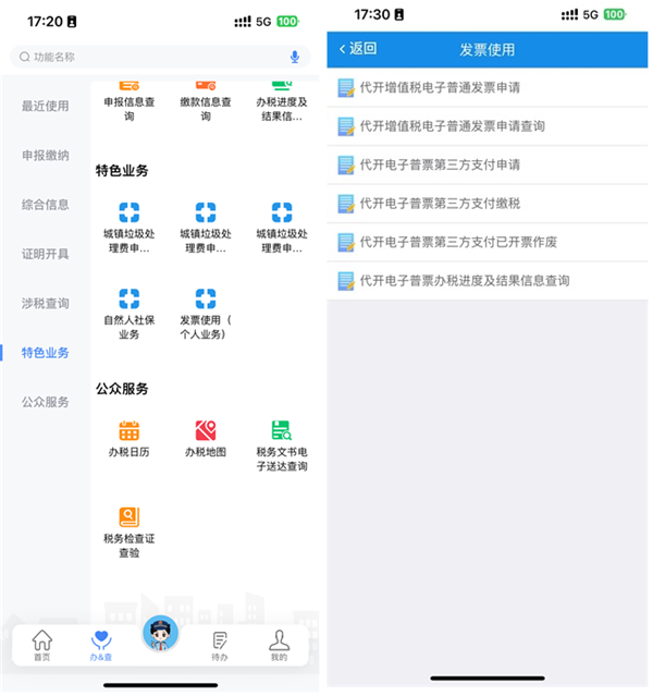 7、个人办税:包括涉税事项办理,如发票使用、税费种申报与缴纳、税收减免、证明开具、退税办理等。