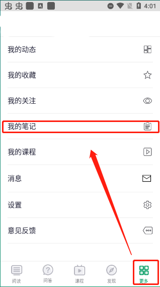 笔记将保存至“更多”中的“我的笔记”中