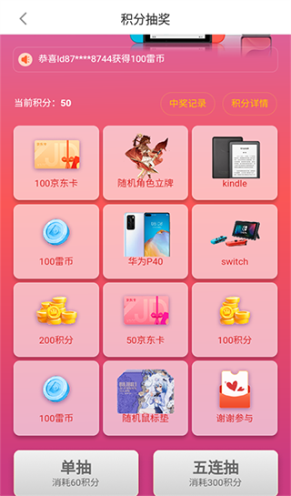 3、然后通过获得而来的积分在【积分抽奖】界面抽取大奖。