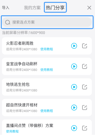 已经设置好的点击方案,可以点击分享按钮复制分享码,方便自己其他设备或者他人多次使用