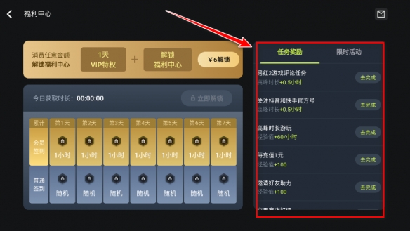 2、先完成右边的任务奖励,接着按照软件的提示操作即可签到了。