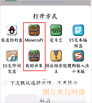 4、有时候部分手机系统自带的浏览器可以直接选择打开MOD模组运行环境,我们选择我的世界游戏。