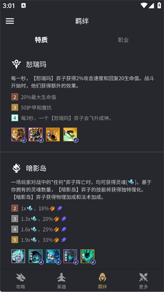 5、【羁绊板块】会详细说明每个特质/职业的加成效果,帮助搭配羁绊组合。