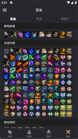 6、【更多板块】的图鉴中能查看装备合成表,清晰了解基础装备与合成装备的对应关系。