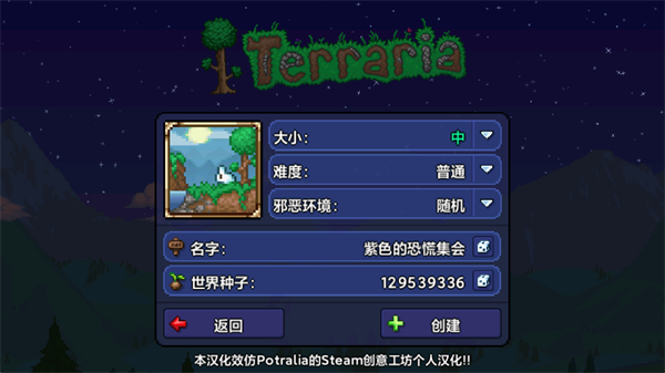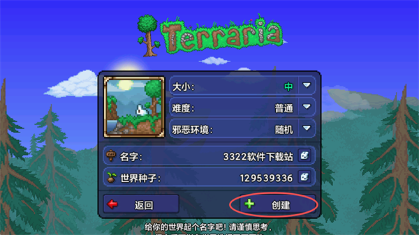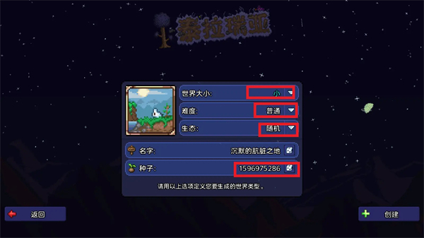 4、提供多种世界大小 – 小/中/大……与 PC 版 Terraria 大小相同!现在包含随机世界名称生成器和使用世界种子的功能(包括一些隐藏的彩蛋世界)。