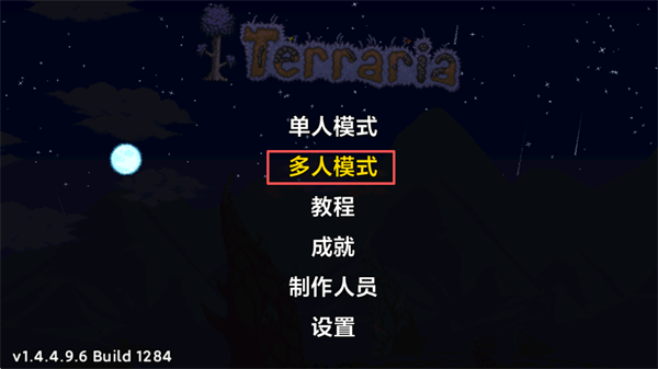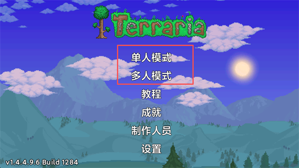 1、进入游戏后,可以看到单人模式、多人模式以及教程、成就、制作人员和设置功能;