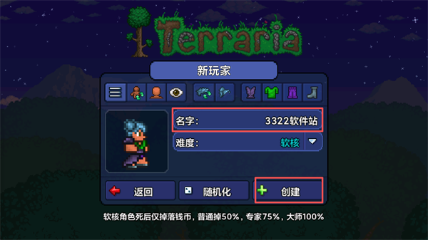 2、首先游戏最主要的是创建角色,以进入单人模式为例,输入名字后,点击创建即可,这里可以凭自己喜好来,没有任何特殊点;