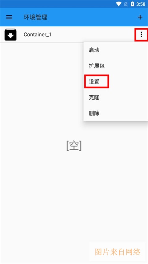 3、选择文件”Container_1"右边的三个点符号,点击“设置”;