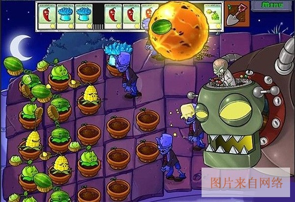 boss还会随机用汽车压扁你的植物,记得上面有花盆就补在缺损的地方,只要及时补充花盆,基本上你是不会缺火力的。