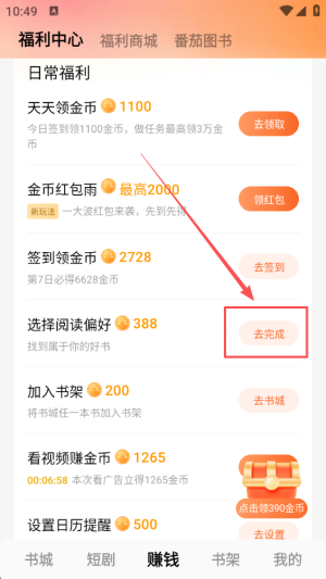4、完成各项任务后,同样能获得金币收益,提升您的收益体验。
