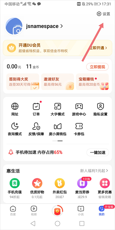 1、用户进入应用的【我的】页面点击右上角的【设置】