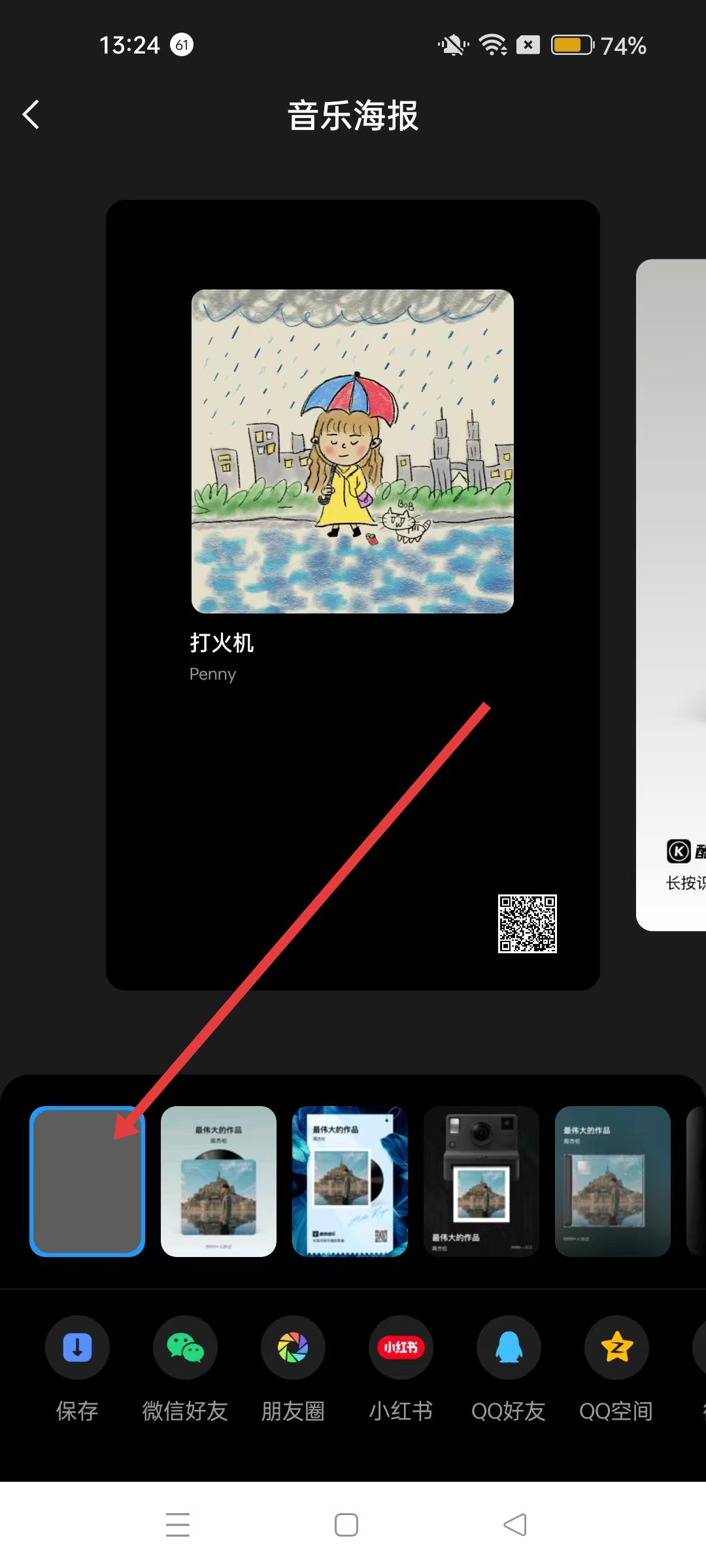 3、分享选项界面,选择音乐海报选项,进入音乐海报制作界面。