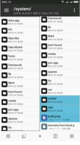 - 文件复制、移动、创建软链接、重命名、删除、创建文件(夹),文件批量操作。获取 Root 权限后可访问系统目录,挂载文件系统为读写,修改文件权限和所有者。