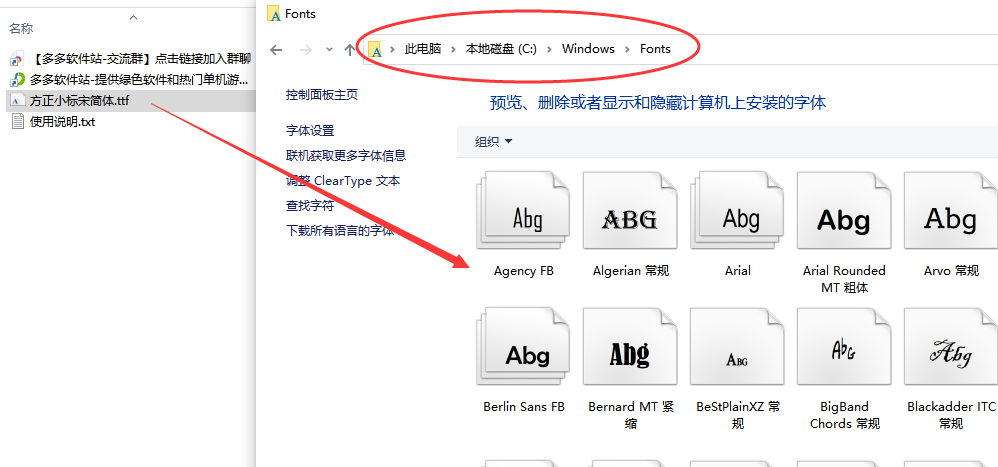 一、Windows系统:将字体文件复制到C:\WINDOWS\Fonts 文件夹即可